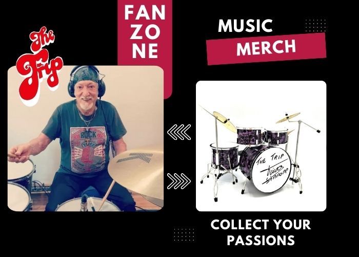 Así es como Pino "Caronte" Sinnone, baterista de la histórica banda de rock progresivo "The Trip", utiliza una de nuestras mini baterías de colección como merchandising único para sus fans. Bateristas, cantantes, músicos de todo género... ¿Habéis pensado alguna vez en un gadget realmente original para vuestros fans? Olvidad las típicas camisetas y pósters, ¡la personalización de los gadgets Music Legends Collection es lo que necesitáis!