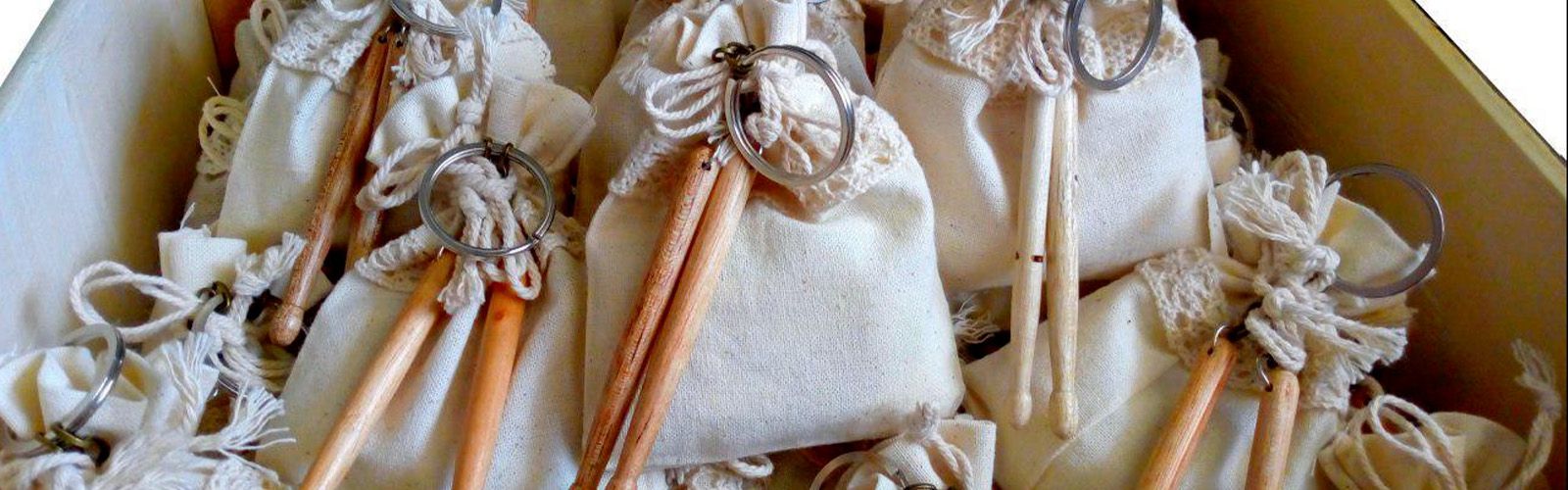 Music Legends Collection vous propose des porte-clés mini baguettes de batterie, parfaits comme cadeaux invités, marque-places ou décorations pour le buffet de bonbons.