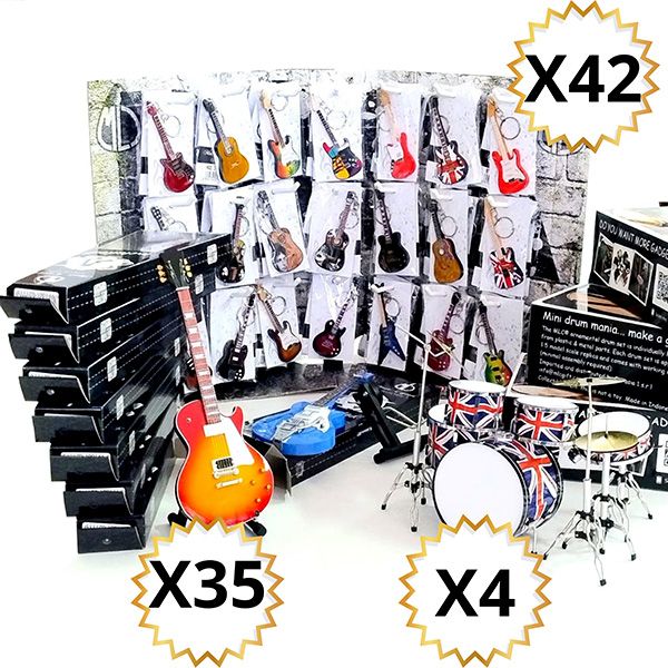 Se vuoi merchandising unico per promuovere la tua music band, festival o marchio, sei nel posto giusto! Music Legends Collection crea mini chitarre, mini batterie da collezione e altri gadgets musicali personalizzati.