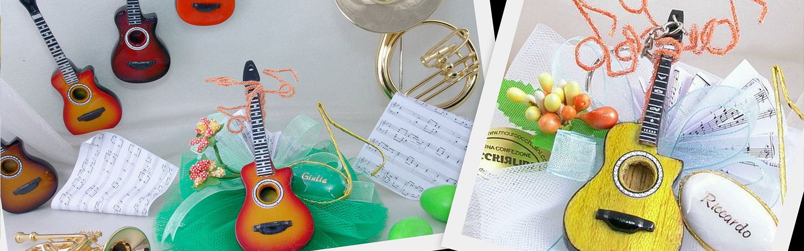 Portachiavi, magneti a forma di strumento musicale... sono tante le idee per rendere unici i tuoi segnaposto, le decorazioni per i confetti e le bomboniere.