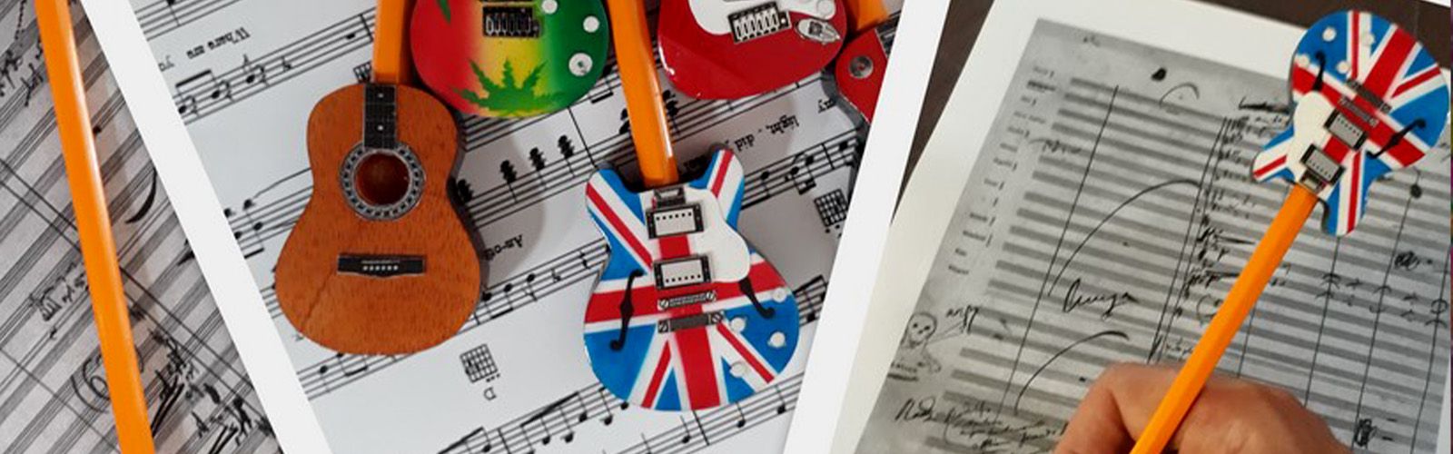 Con le nostre matite con tappo a forma di chitarra non passerai certo inosservato tra i tui compagni di classe.