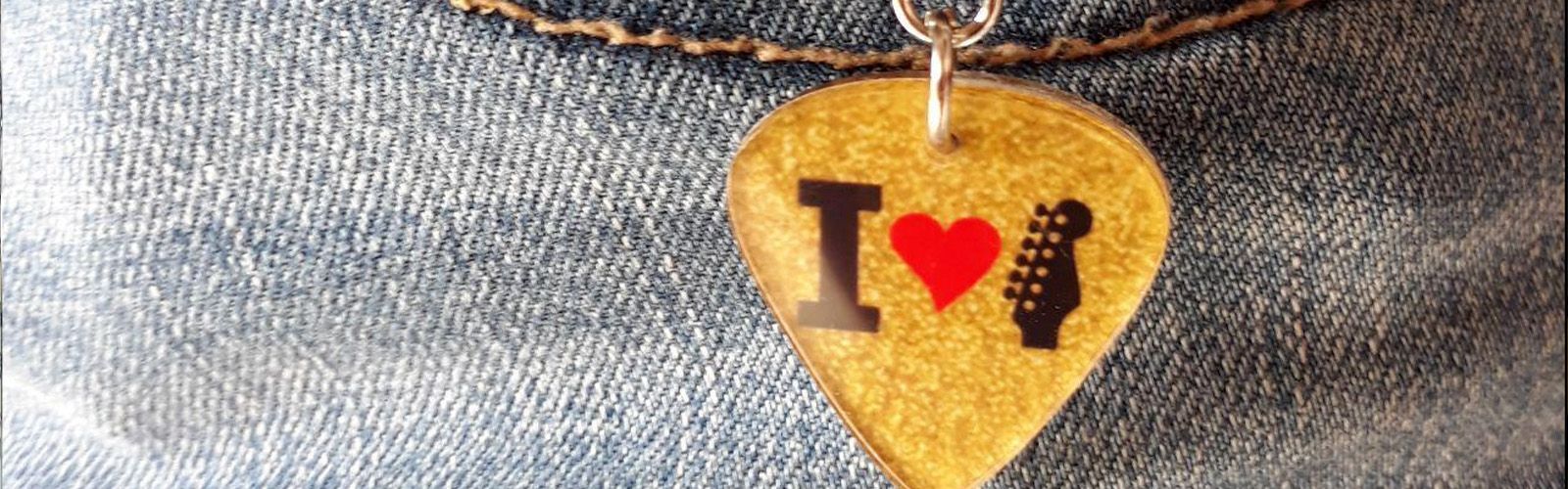 Portachiavi forma plettro chitarra a tema musicale